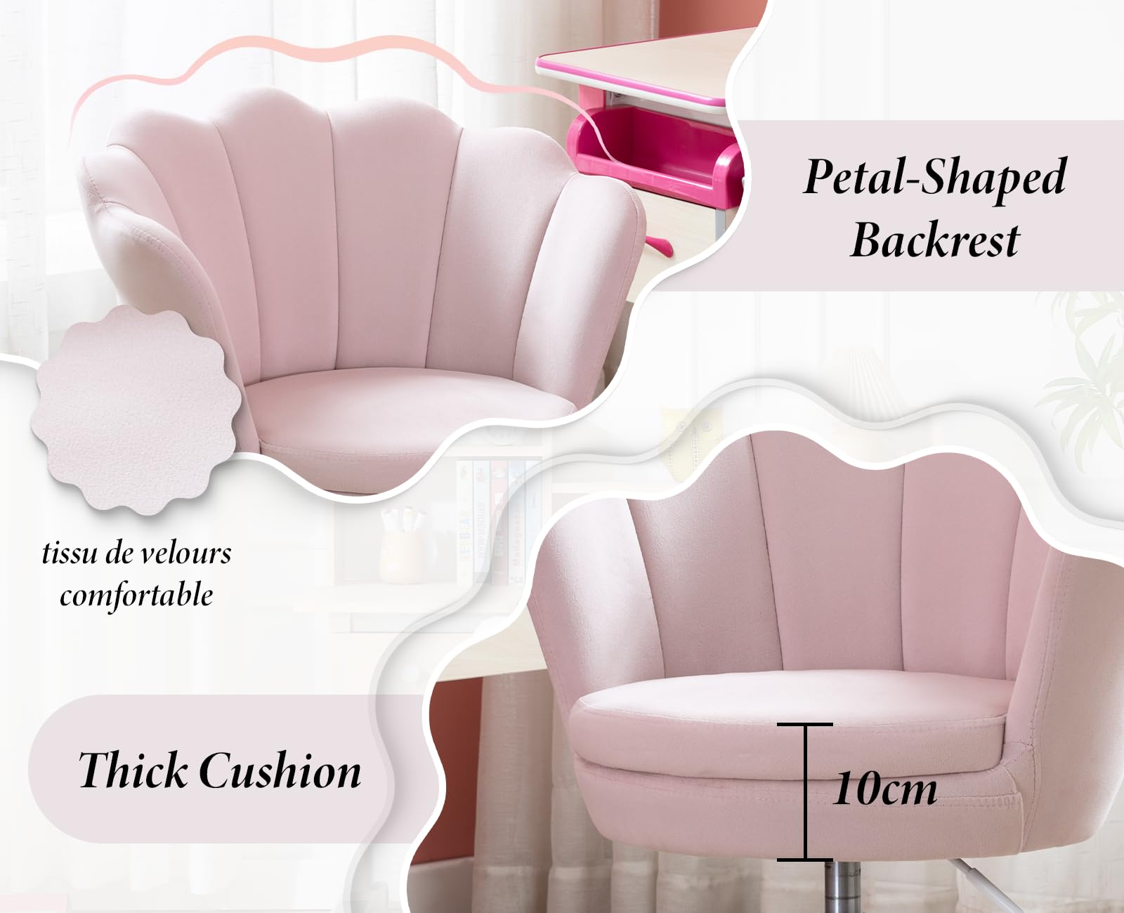 - CUTE PETAL-SHAPED DESIGN: Das Blütenblatt Rückenlehne und gesteppte Design machen den Stuhl wie eine Blume, mit hellen und modernen Farben, perfekt für Kinderzimmer oder Arbeitsräume, die Verbesserung der Ästhetik und Spaß des Raumes.